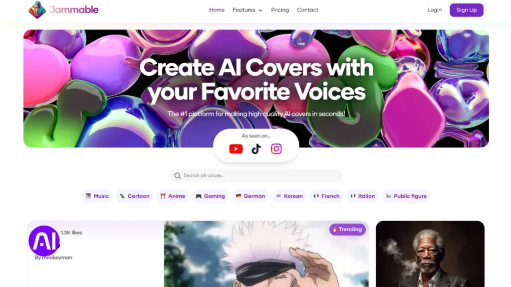 While Covers.ai focuses on multilingual capabilities and genre transformation, Jammable specializes in celebrity voice replication and community-driven voice model sharing. This specialization makes Jammable particularly attractive for content creators seeking recognizable voice personalities.